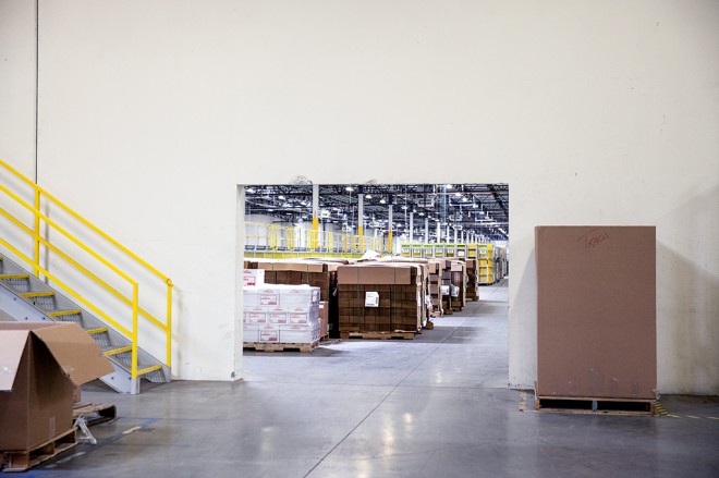 PHX6 占地 120 万平方码(约合 100 万平方米),中心内共有两套运营方案同时实施,就像彼此的镜像一样。这么设计的逻辑是让运营中心能够根据突然增多或减少的购物需求来随时调整运营工作能力。